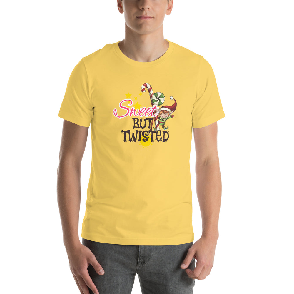 Embrace the naughty and nice sides of the holiday season with our Sweet but Twisted Elf Candy Cane T-Shirt – a cheerful and whimsical design that's bound to spread joy and laughter wherever you go!